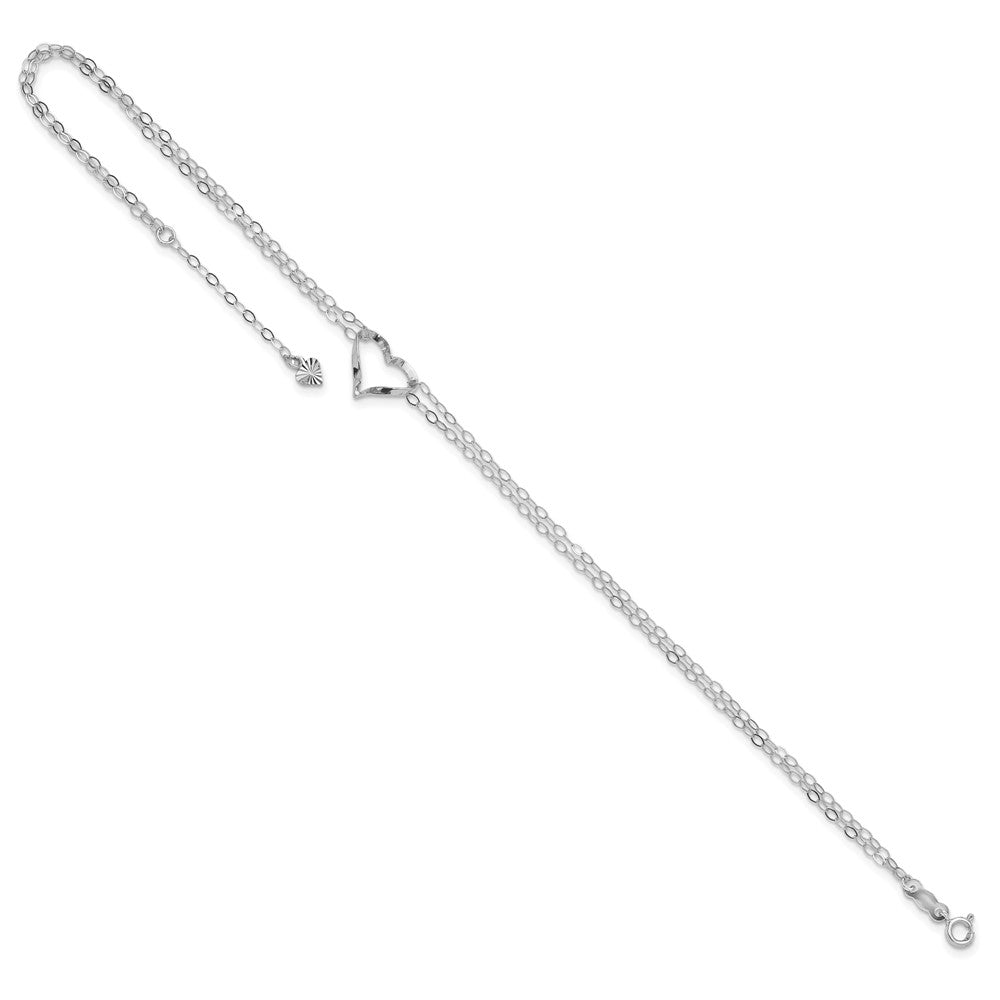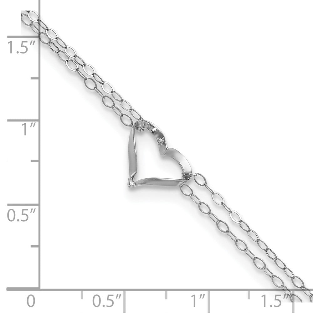 14k White Gold Double Strand Chain Twisted Heart Plus Extender - Total Anklet