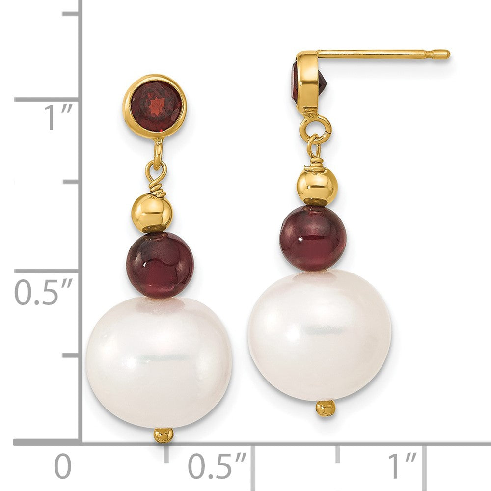 14k Garnet & 9- White Near Round FWC Pearl post Earrings