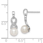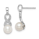 Sterling Silver Rhod Plated Diamond and FW Cultured Pearl Post Ear