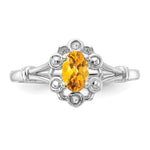 Sterling Silver Rhodium-plated Citrine & Diam. Ring