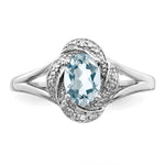 Sterling Silver Rhodium-plated Diam. & Aquamarine Ring