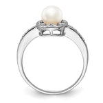 Sterling Silver Rhodium-plated Diam. & FW Cultured Pearl Ring