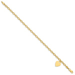 14K Engravable 14x Solid Dangle Heart Charm and Hollow Chain Bracelet