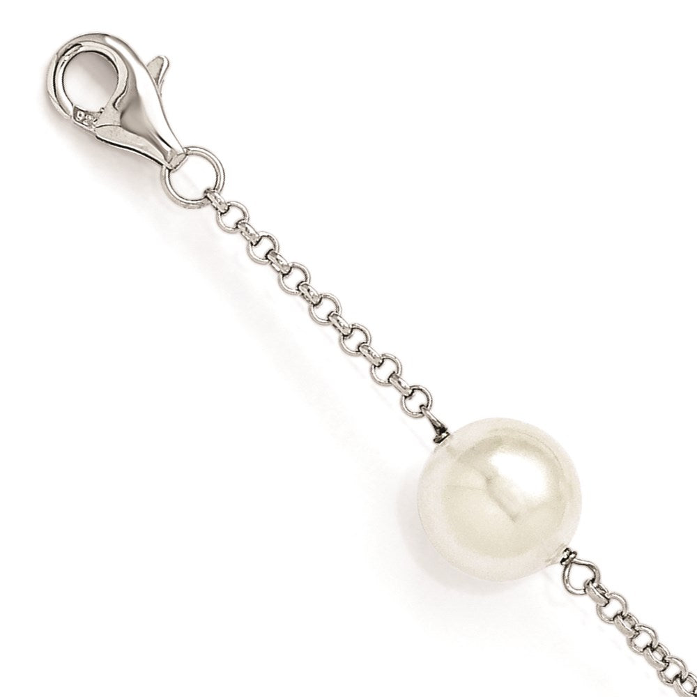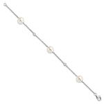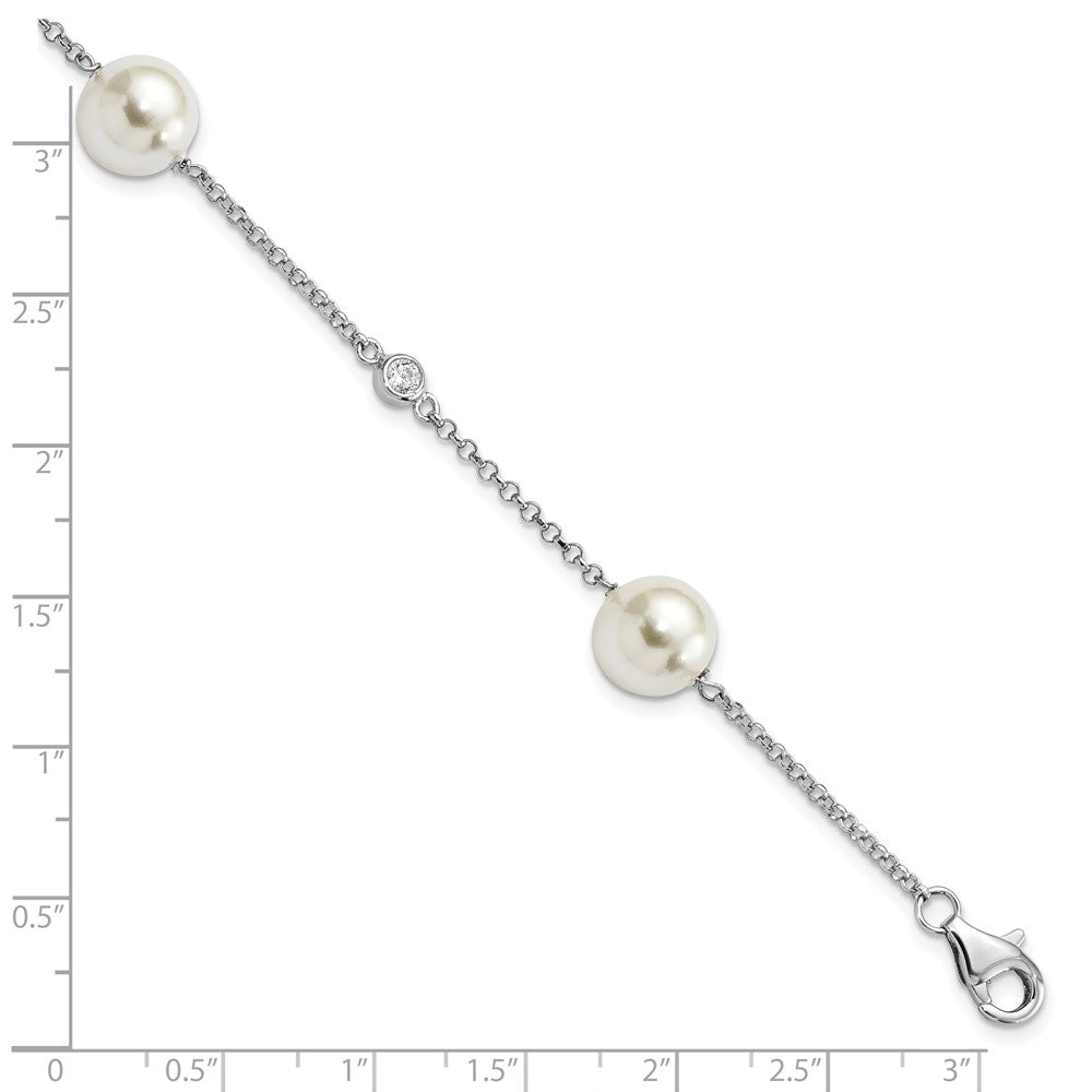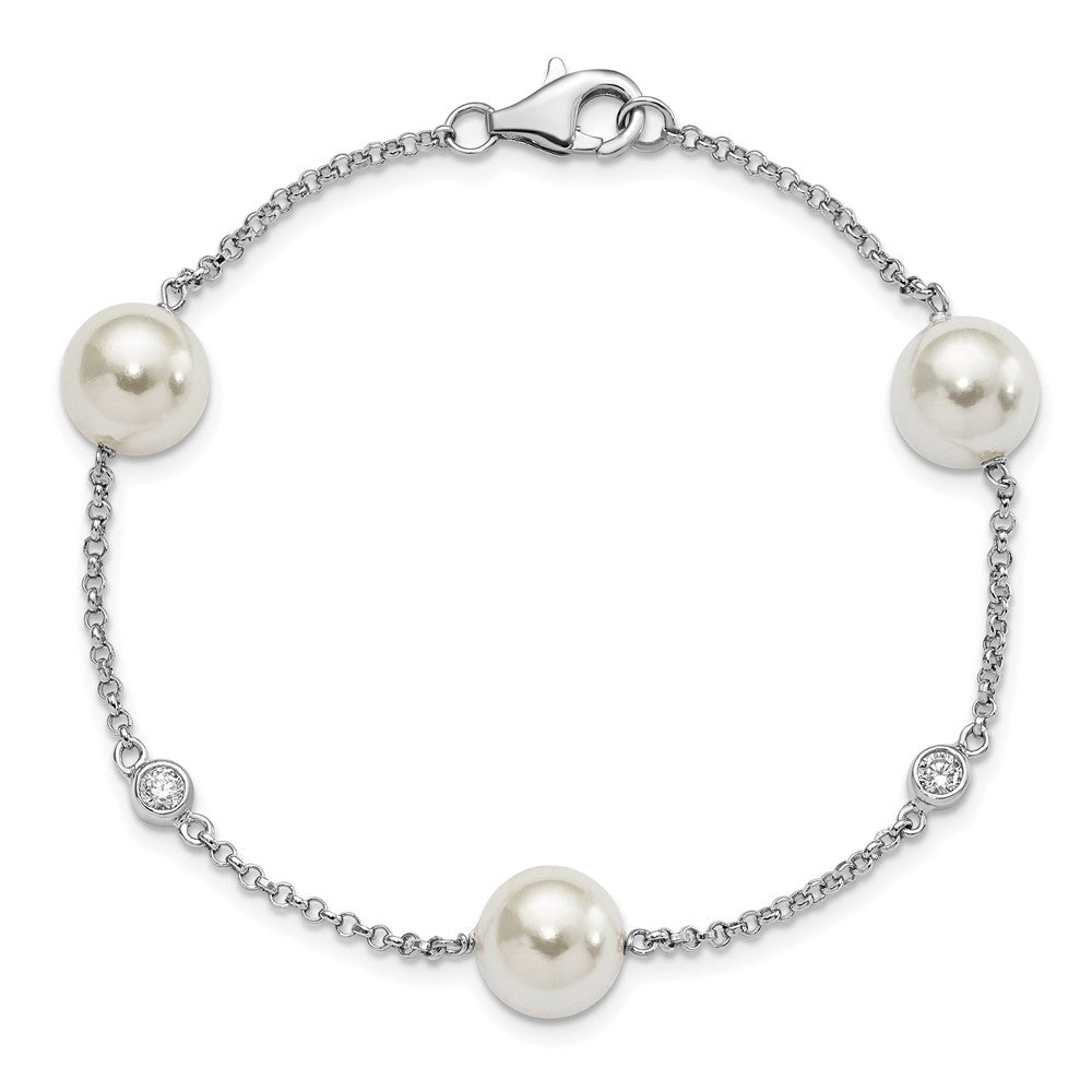Majestik Sterling Silver Rhodium-plated 10- White Imitation Shell Pearl and CZ Hand-knotted Station Bracelet