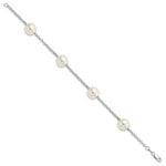 Majestik Sterling Silver Rhodium-plated 10- White Imitation Shell Pearl Hand-knotted 4 Station Bracelet