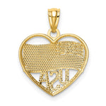14k and White Rhodium Polished American Flag USA in Heart Pendant