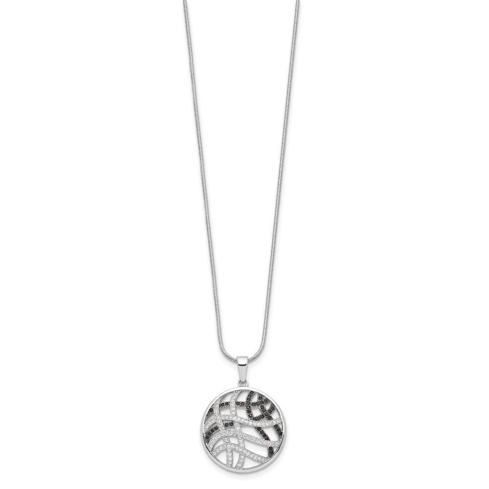 Brilliant Embers Sterling Silver Rhodium-plated 118 stone Micro PavÇ Black and White CZ Necklace with 2 Inch Extender