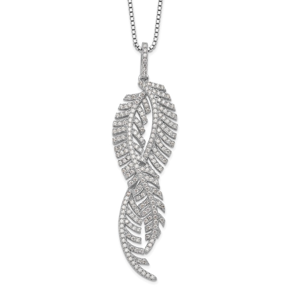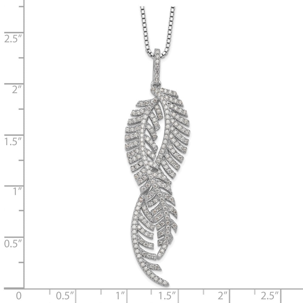 Brilliant Embers Sterling Silver Rhodium-plated 219 Stone Micro PavÇ CZ Feathers Necklace with 2 Inch Extender