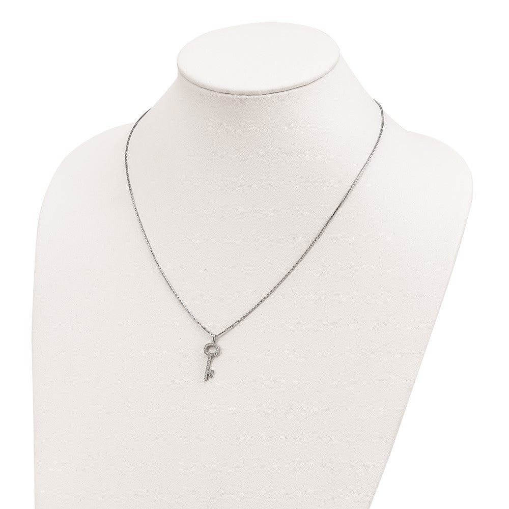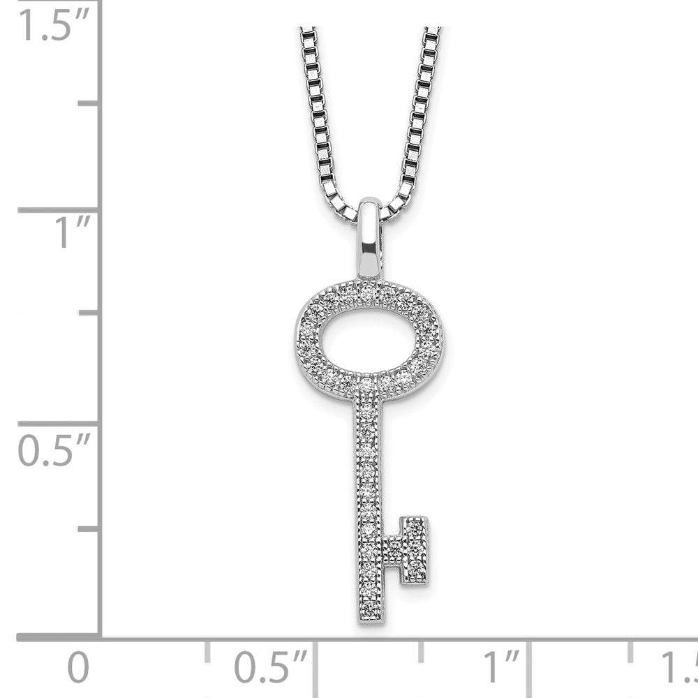 Brilliant Embers Sterling Silver Rhodium-plated 33 Stone Micro PavÇ CZ Key Necklace with 2 Inch Extender