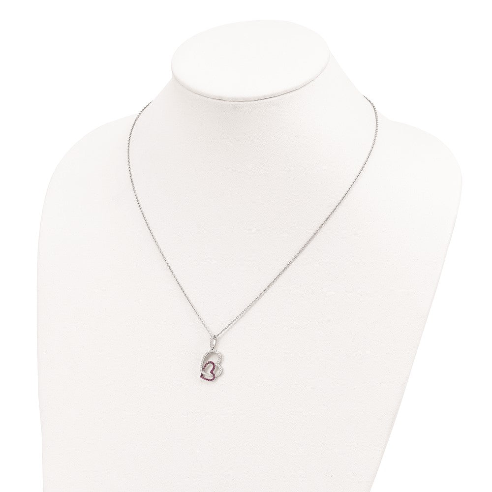 Brilliant Embers Sterling Silver Rhodium-plated 62 Stone Micro PavÇ Red and White CZ Heart Necklace with 2 Inch Extender