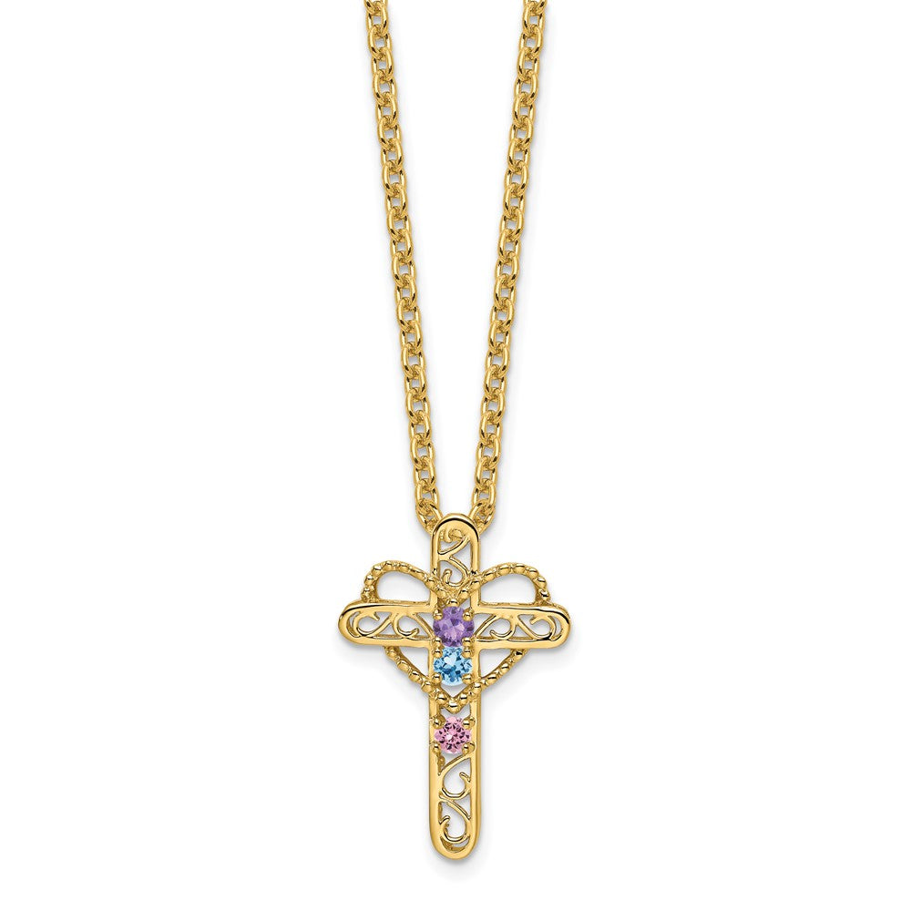 14k Genuine 3 Stone Mother's Cross Pendant