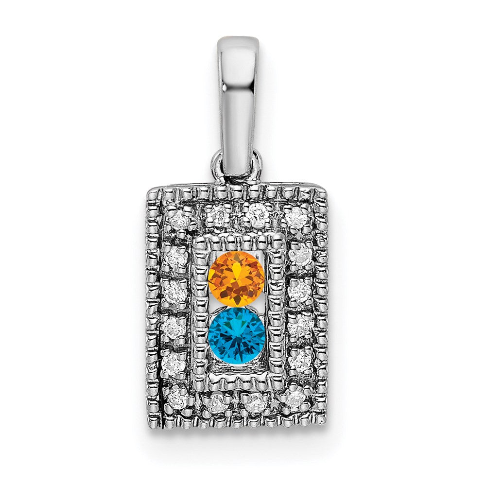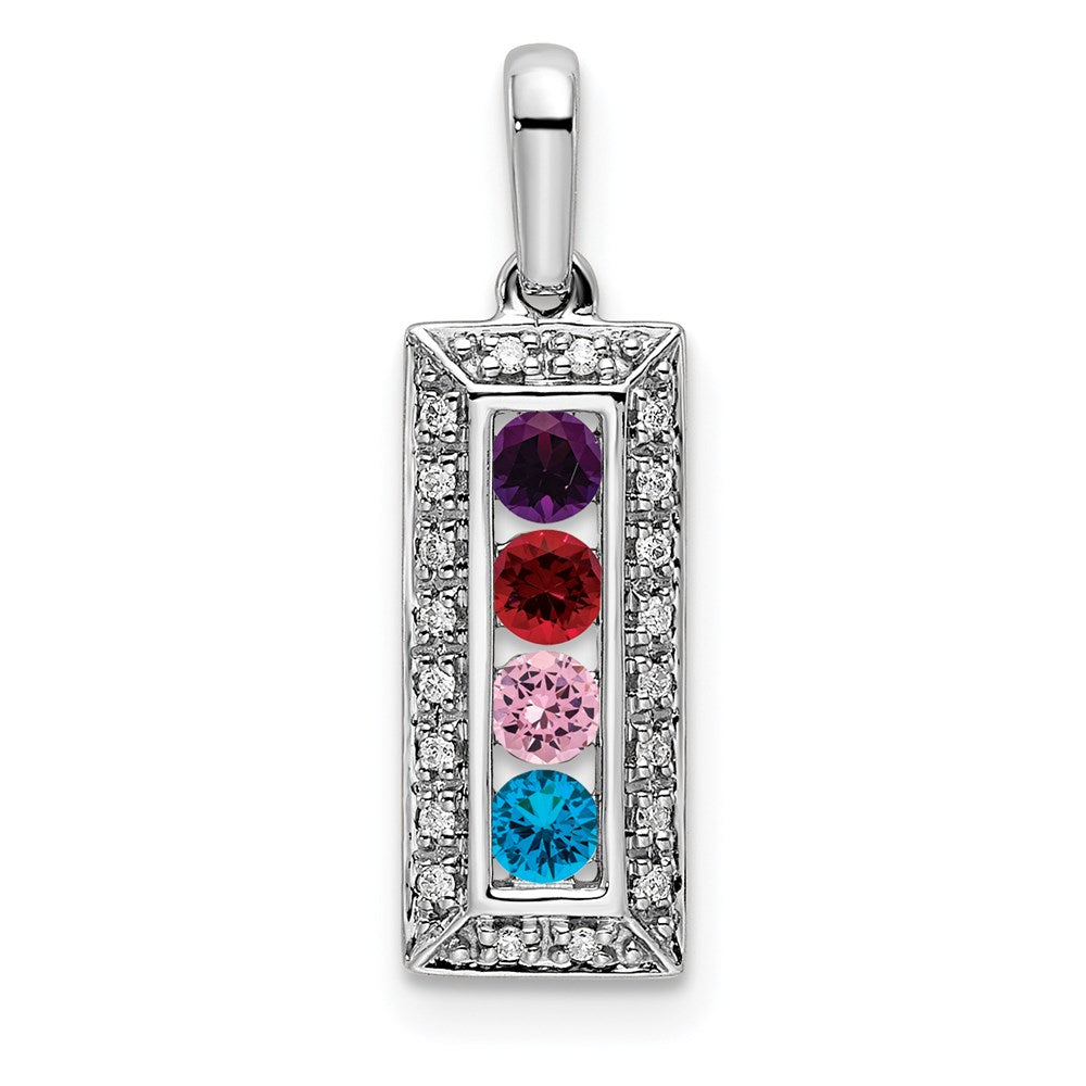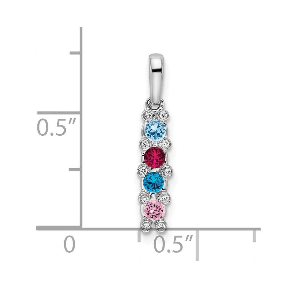 14K White Gold Family Jewelry Synthetic Stone & Diamond Set Pendant