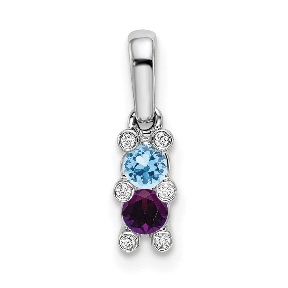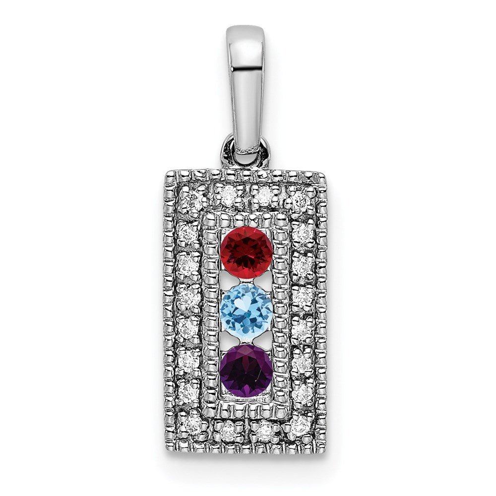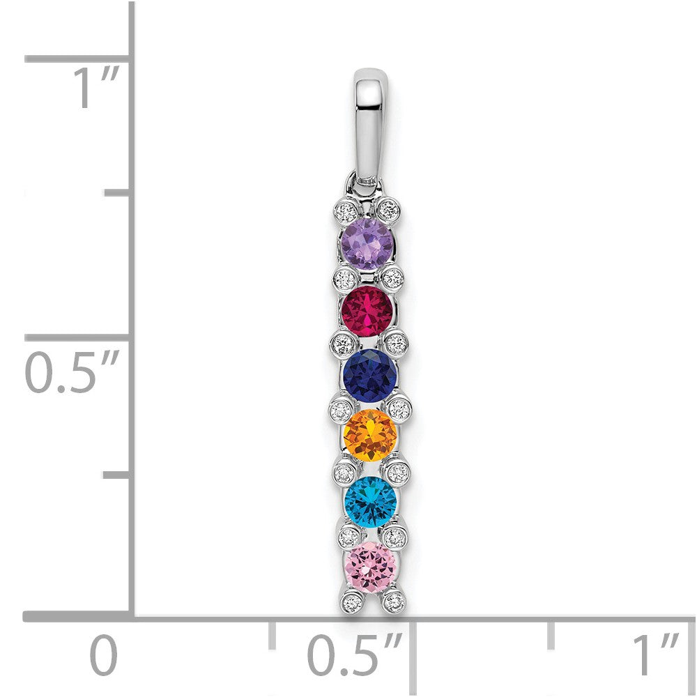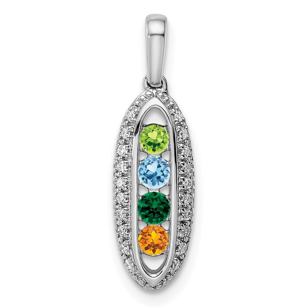 14K White Gold Family Jewelry Synthetic Stone & Diamond Set Pendant