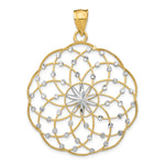 14k and White Rhodium Diamond-cut Spiral Circle Pendant