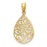 14K Polished and Textured Small Filigree Teardrop Pendant