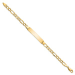 14k Polished Semi-Solid Chain/Solid Plate Figaro Link 34.5x Plate ID Bracelet