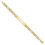 14k Polished Semi-Solid Chain/Solid Plate Figaro Link 39x Plate ID Bracelet
