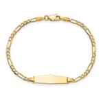 14k Polished Solid Chain/Solid Plate Figaro Link Soft Diamond Shape 19.5x Plate Baby/Child ID Bracelet