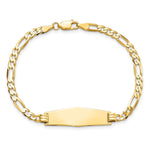 14k Polished Solid Chain/Solid Plate Flat Figaro Link Soft Diamond Shape 28x Plate ID Bracelet