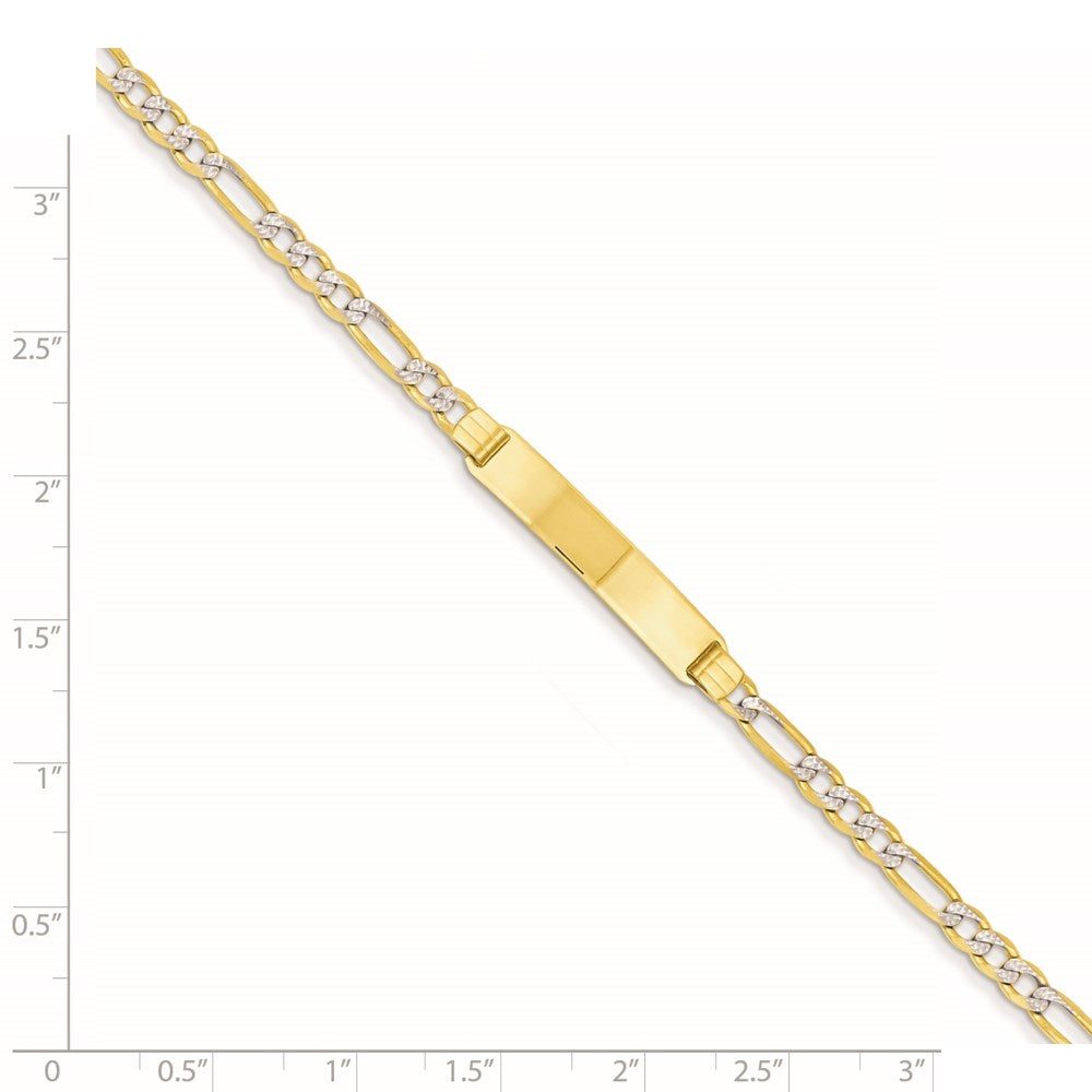 14k Polished with Rhodium Pav‚ Solid Chain/Solid Plate Figaro Link 25.5x Plate ID Bracelet