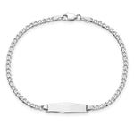14k White Gold Polished Solid Chain/Solid Plate Flat Curb Link Soft Diamond Shape 19.5x Plate ID Bracelet