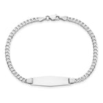 14k White Gold Polished Solid Chain/Solid Plate Flat Curb Link Soft Diamond Shape 24.5x Plate ID Bracelet