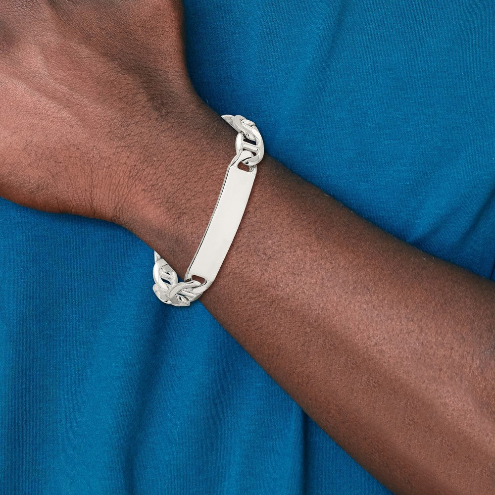 Sterling Silver Polished Engraveable Anchor Link ID Bracelet