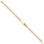 14K Medical Semi-Solid Chain/Solid Plate 26x Soft Diamond Shape Off-Center Red Enamel Anchor Link ID Bracelet
