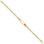 14K Medical Semi-Solid Chain/Solid Plate 26x Soft Diamond Shape Off-Center Red Enamel Figaro Link ID Bracelet