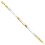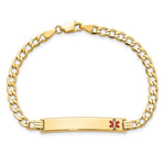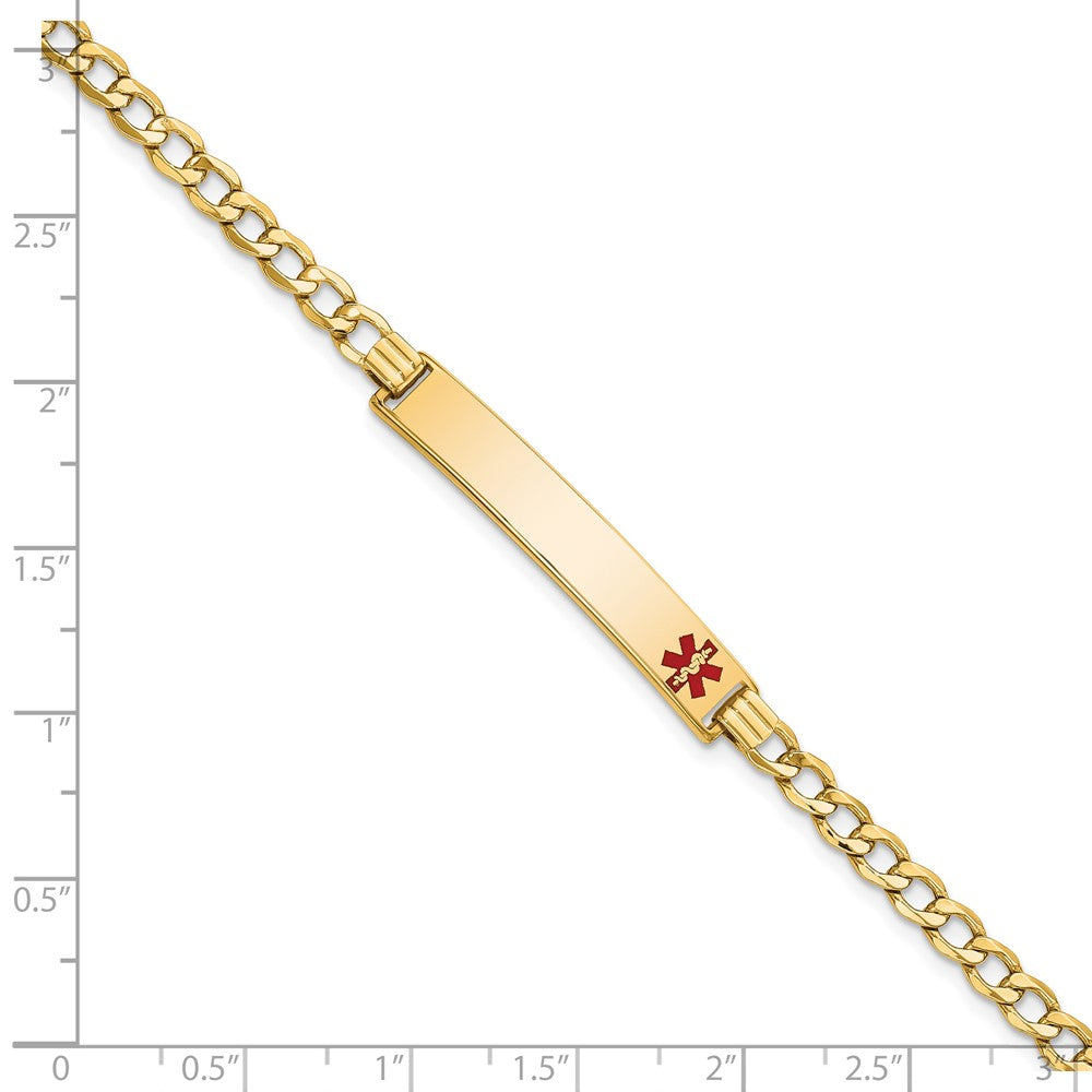 14K Medical Semi-Solid Chain/Solid Plate 35x Off-Center Red Enamel Curb Link ID Bracelet