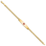 14K Medical Semi-Solid Chain/Solid Plate Soft Diamond Shape 33x Centered Red Enamel Curb Link ID Bracelet