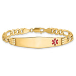 14K Medical Semi-Solid Chain/Solid Plate Soft Diamond Shape 38x Off-Center Red Enamel Figaro Link ID Bracelet