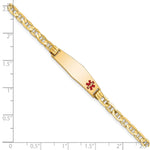 14K Medical Solid Chain/Solid Plate 26x Soft Diamond Shape Off-Center Red Enamel Anchor Link ID Bracelet