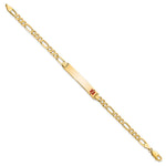 14K Medical Solid Chain/Solid Plate 33x Off-Center Red Enamel Flat Figaro Link ID Bracelet