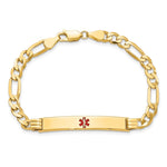 14K Medical Solid Chain/Solid Plate 37x Centered Red Enamel Flat Figaro Link ID Bracelet