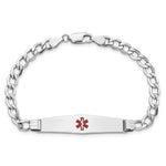 14K White Gold Medical Semi-Solid Chain/Solid Plate Soft Diamond Shape 36x Centered Red Enamel Curb Link ID Bracelet