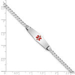 14K White Gold Medical Solid Chain/Solid Plate 24x Soft Diamond Shape Centered Red Enamel Flat Curb Link ID Bracelet