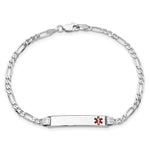 14K White Gold Medical Solid Chain/Solid Plate 26x Off-Center Red Enamel Figaro Link ID Bracelet