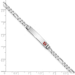 14K White Gold Medical Solid Chain/Solid Plate 26x Off-Center Red Enamel Figaro Link ID Bracelet