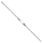 14K White Gold Medical Solid Chain/Solid Plate 26x Soft Diamond Shape Off-Center Red Enamel Figaro Link ID Bracelet