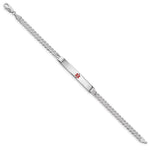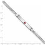 14K White Gold Medical Solid Chain/Solid Plate 37x Centered Red Enamel Flat Curb Link ID Bracelet
