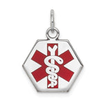 14k White Gold Red Enamel Medical Jewelry Pendant