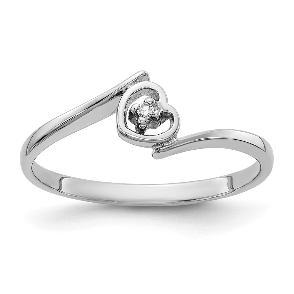 14k White Gold AA Diamond Heart Ring