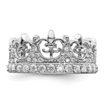 Sterling Silver Rhodium-plated Fleur-de-lis Crown CZ Ring