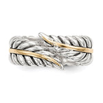 Sterling Silver w/14k Antiqued Leaves Bypass Ring
