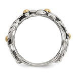 Sterling Silver w/14k Antiqued Leaves & Flowers Band