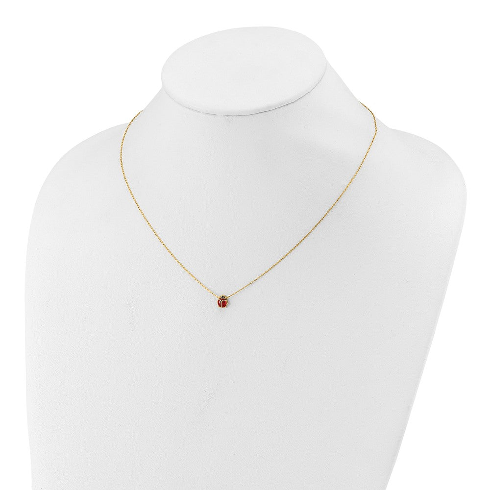 14k Polished Red and Black Enameled Ladybug Necklace Plus Extender