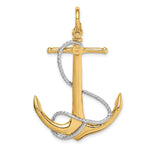 14k Two-tone 3-D Large Anchor with Entwined Rope Accent Pendant