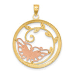14k Two-tone with White Rhodium Butterfly in Circle Pendant