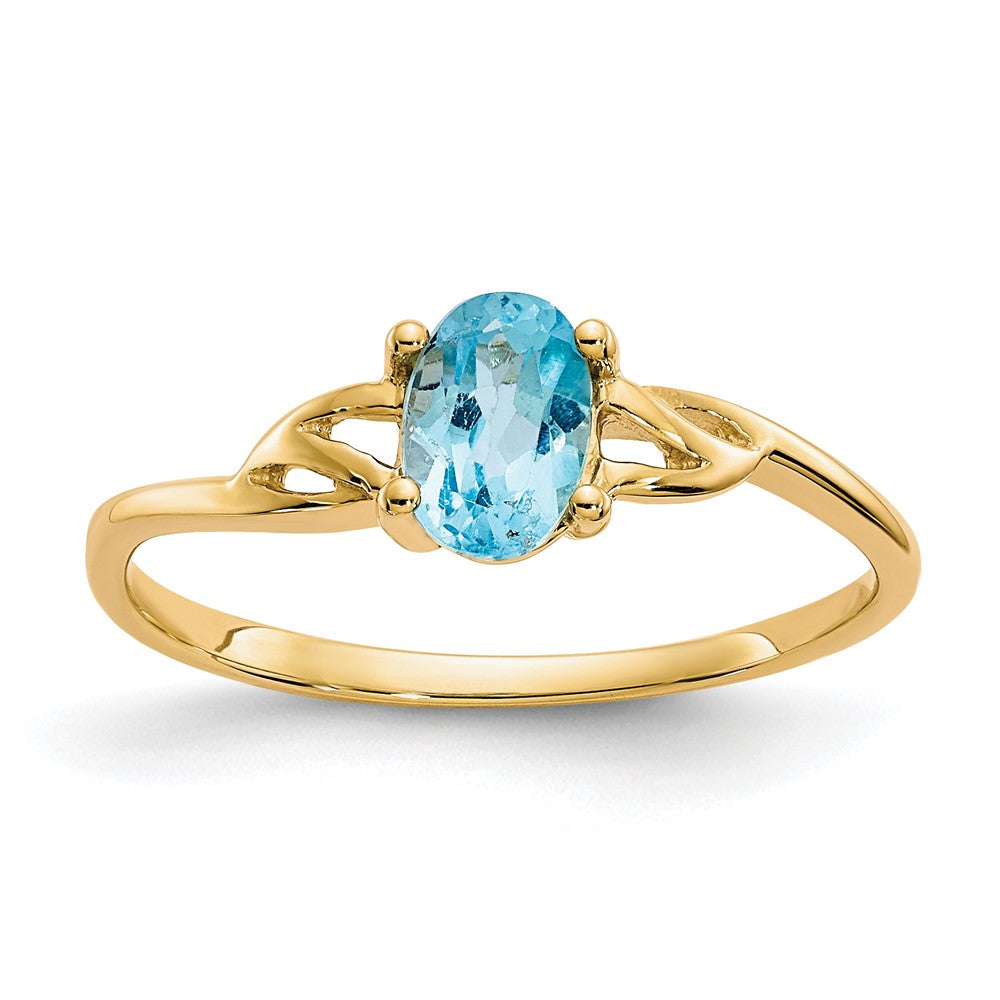 10k Polished Genuine Blue Topaz Birthstone Ring